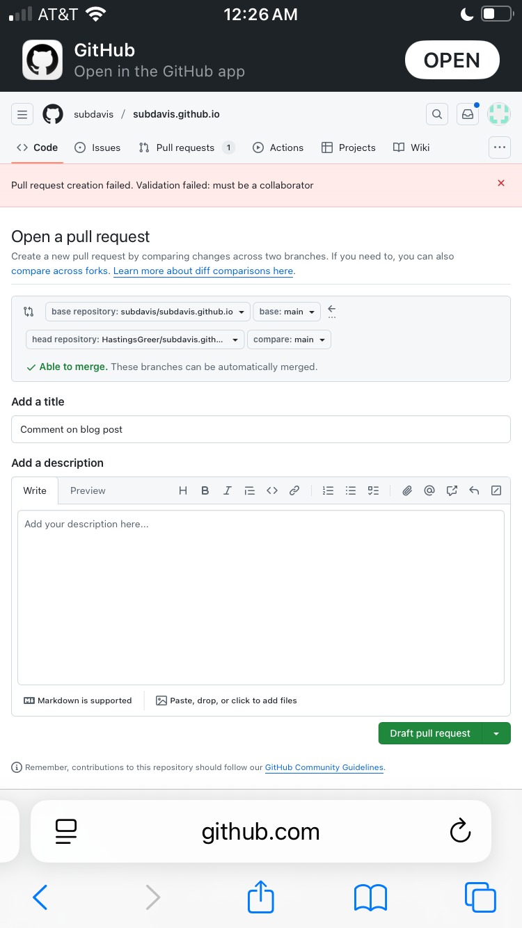 Recently, I found myself wanting to comment on my friend Brandon's blog. Alas, none of our websites have comments sections! For this case, I was able to just whack my comment on to his page via a github pull request, but this doesn't scale- among other issues, I had to text him first to get him to turn on my ability to make pull requests.